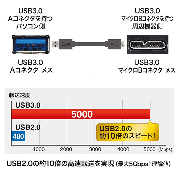 Logitec/ロジテック対応 USB3.0 MicroB USBケーブル 3.0m 送料無料【メール便の場合】