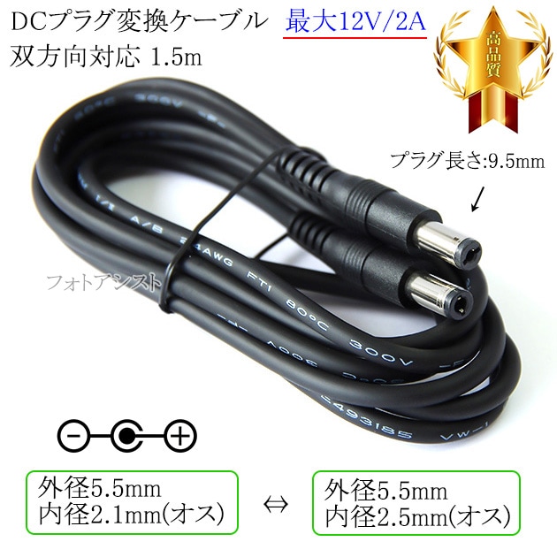 DCプラグ変換ケーブル 外径5.5mm/内径2.1mm(オス)⇔外径5.5mm/内径2.5mm(オス) 最大12V/2A 1...