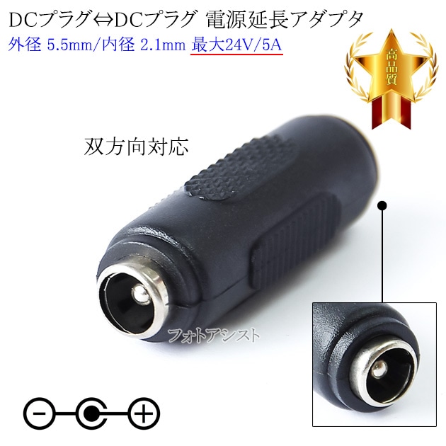DC電源プラグ⇔DC電源プラグ アダプタ オス⇔オス 外径 5.5mm/内径 2.1mm 最大24V/5A