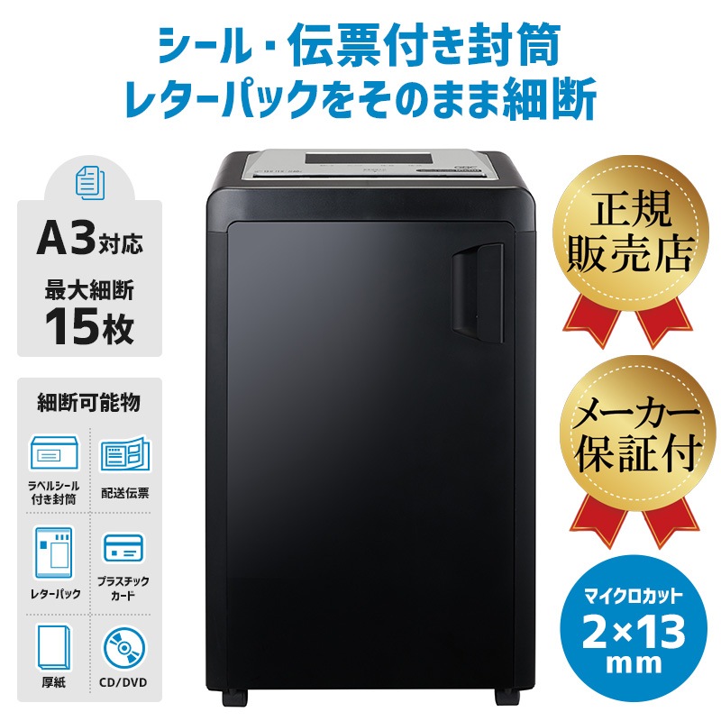 【シール付き封筒もレターパックを細断】業務用マイクロカットシュレッダー 封筒/厚紙/ハガキ/ホチキス/CD/DVD/カード/静音 ...