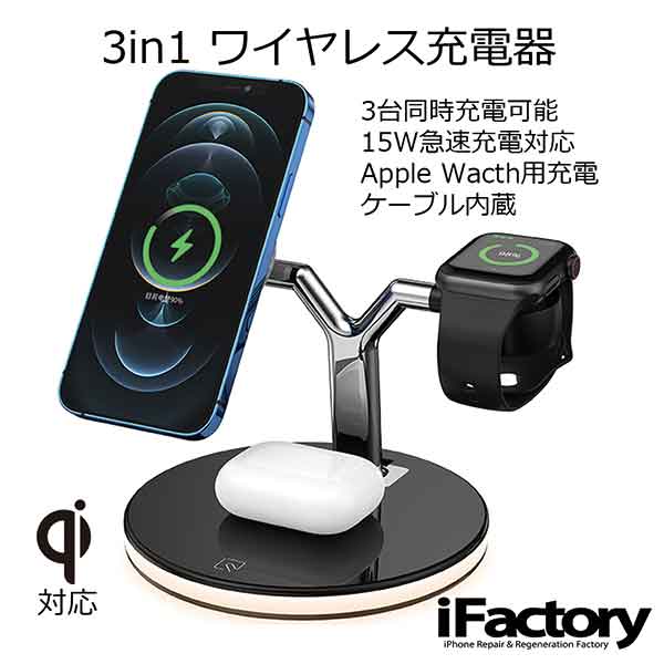3in1 Magsafe Qi ワイヤレス充電器 iPhone AppleWatch AirPods Android【新入荷】