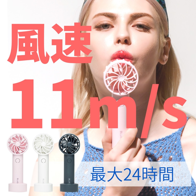 【訳あり アウトレット】ポータブル扇風機 携帯扇風機 超小型ヘッド 風速11m/s 最大24時間使用 圧倒的パワフル風力 BLUE...