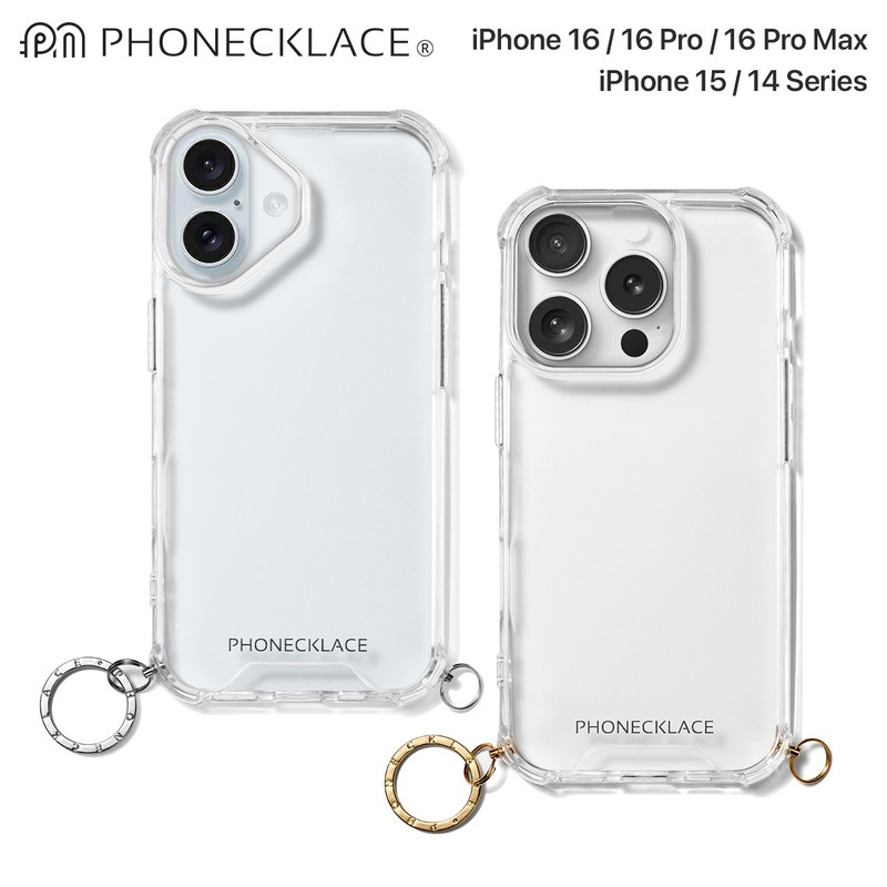 [iPhone 16 / 16 Pro / 16 Plus / 16 Pro Max 用] ストラップ用 リング付き クリアケース...