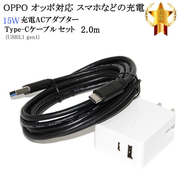 【互換品】 OPPO オッポ対応 ACアダプターとType-Cケーブル(A-C USB3.1 gen1 1m 黒)充電セット 送料...