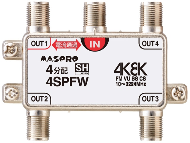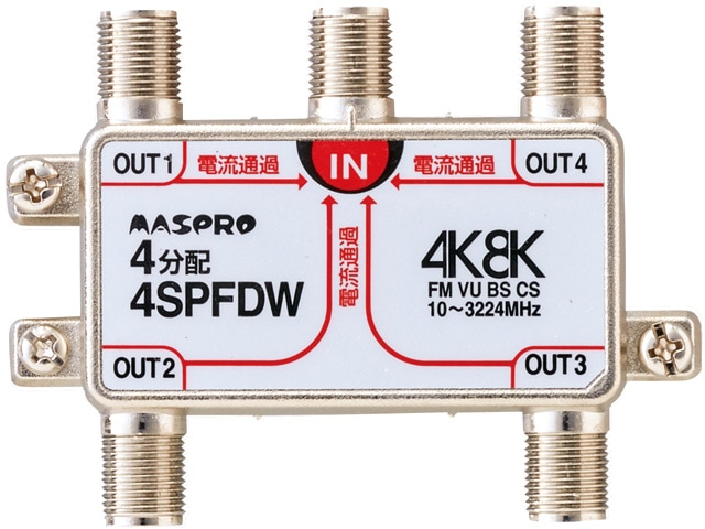 [4SPFDW] 全端子電流通過型 4K・8K衛星放送 3224MHz対応 4分配器