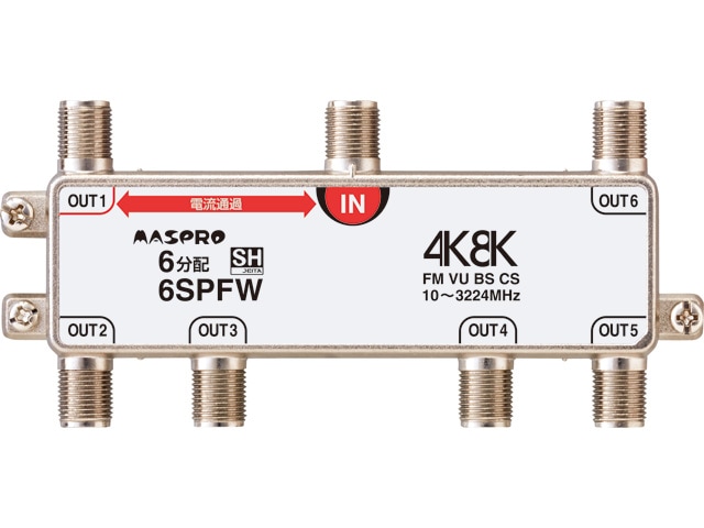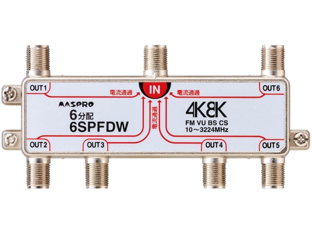 [6SPFDW] 全端子電流通過型 4K・8K衛星放送 3224MHz対応 6分配器