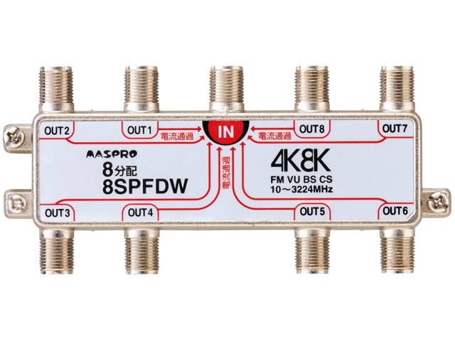 [8SPFDW] 全端子電流通過型 4K・8K衛星放送 3224MHz対応 8分配器