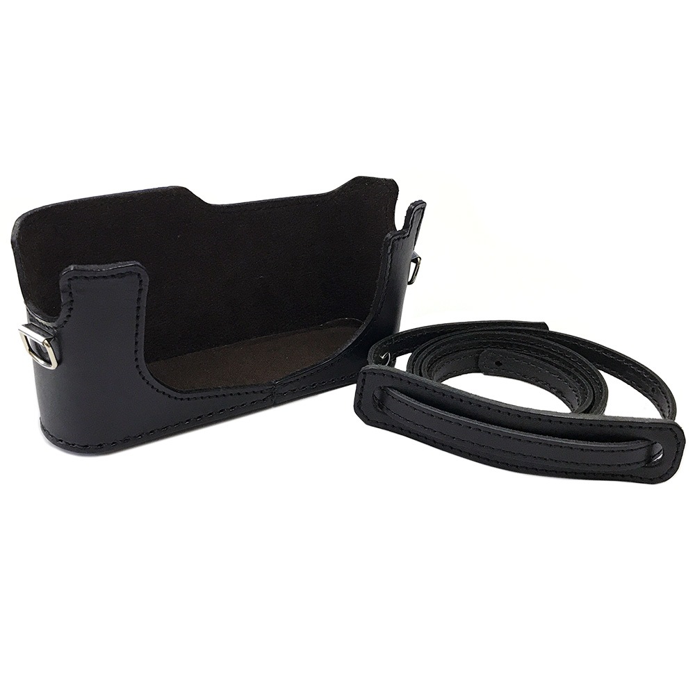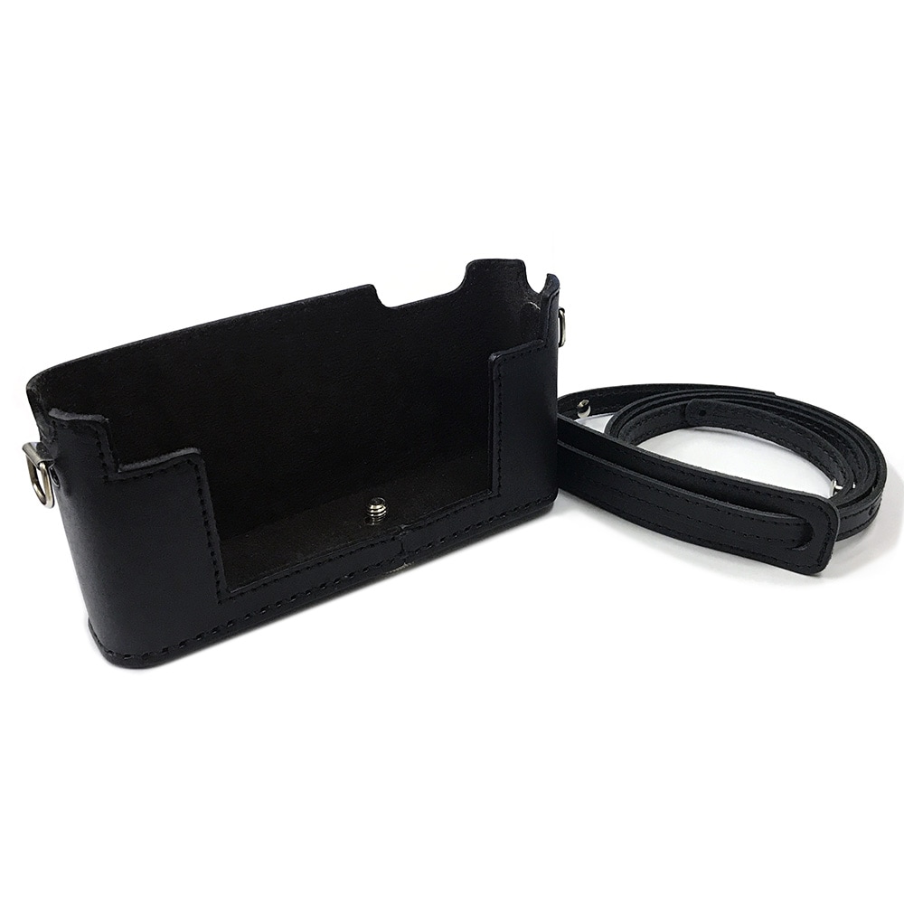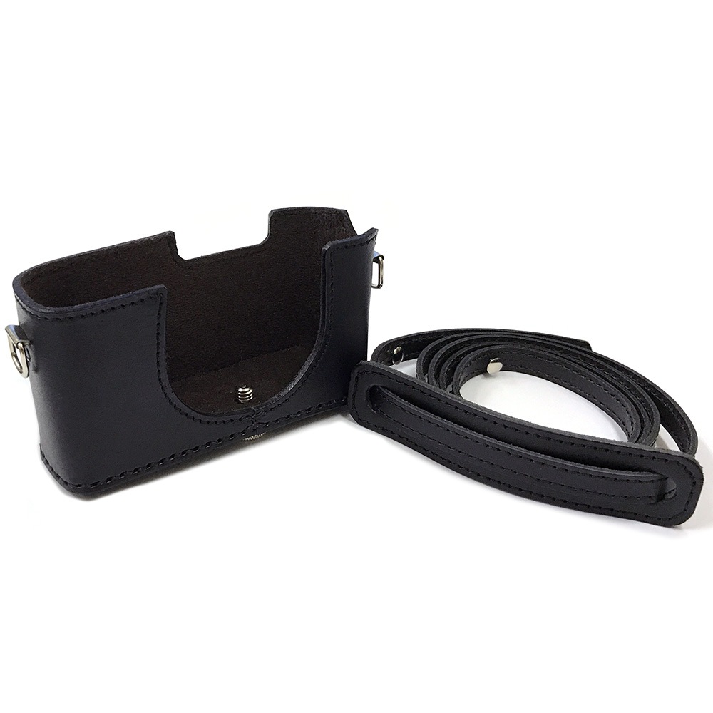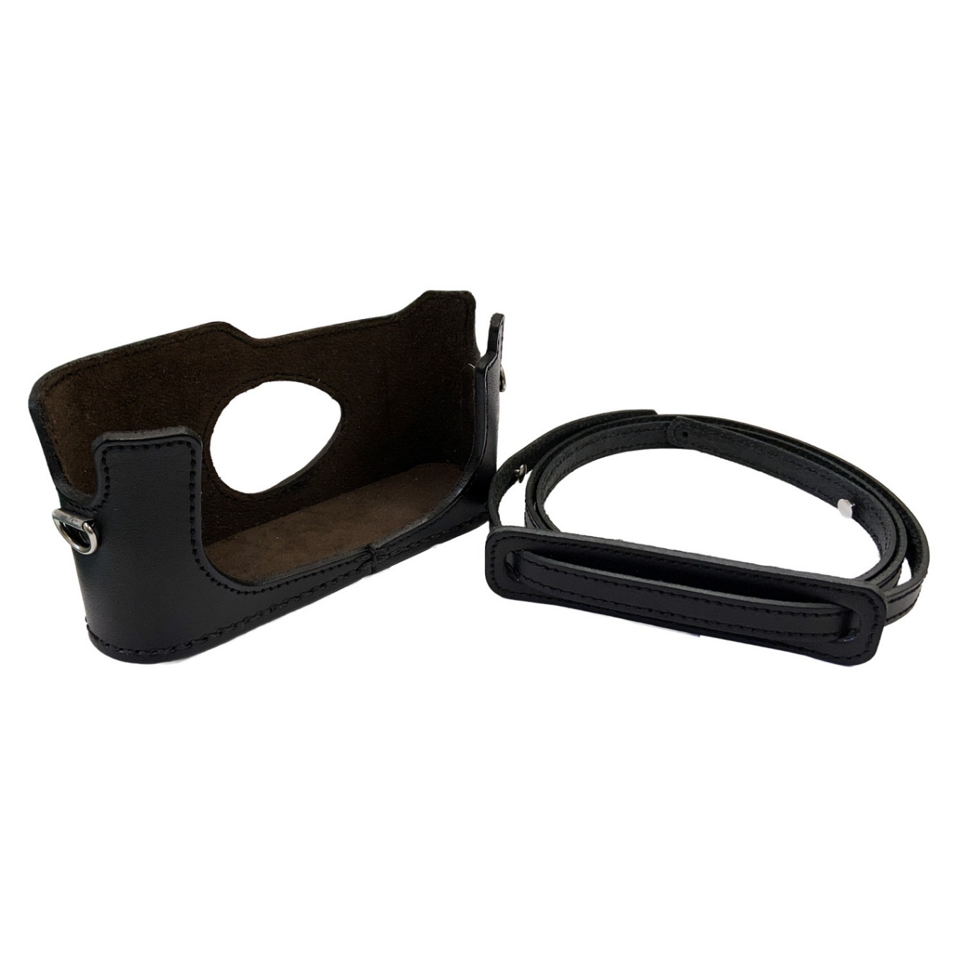 カメラ.ヒラノ FUJIFILM フジフイルム X100用 ハンドメイド本革カメラケース(ストラップ付属) ブラック