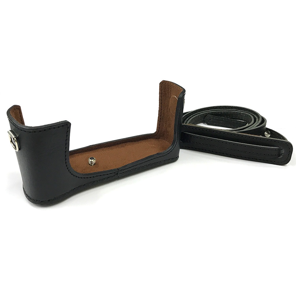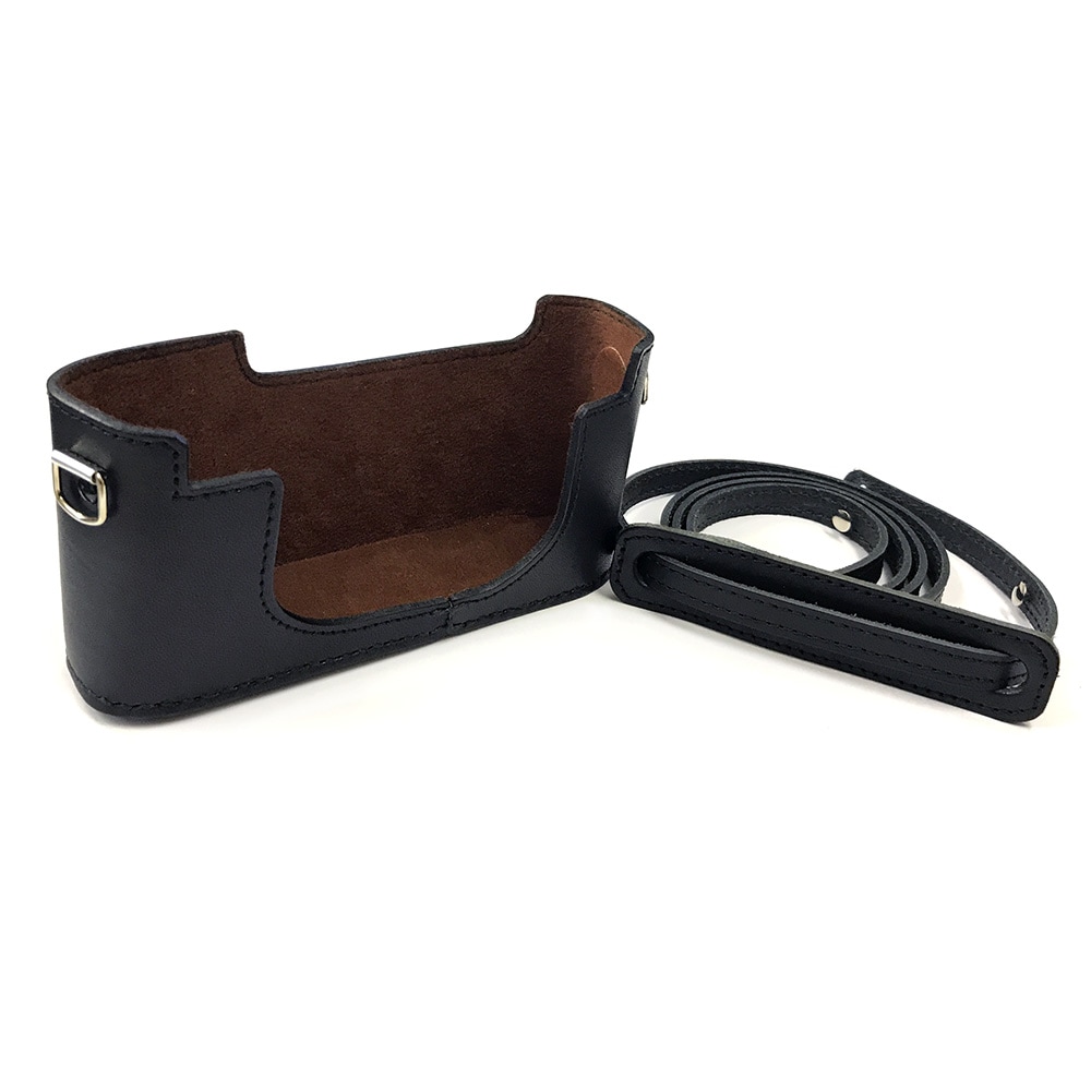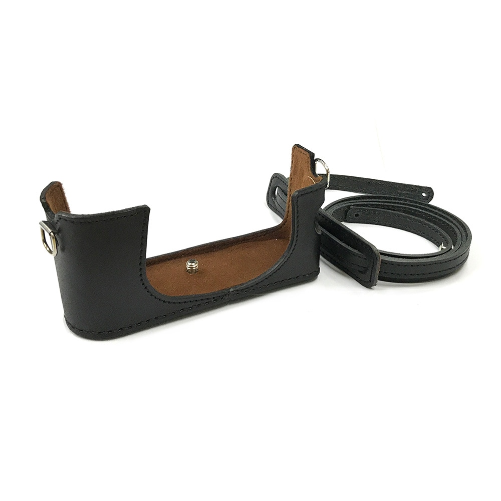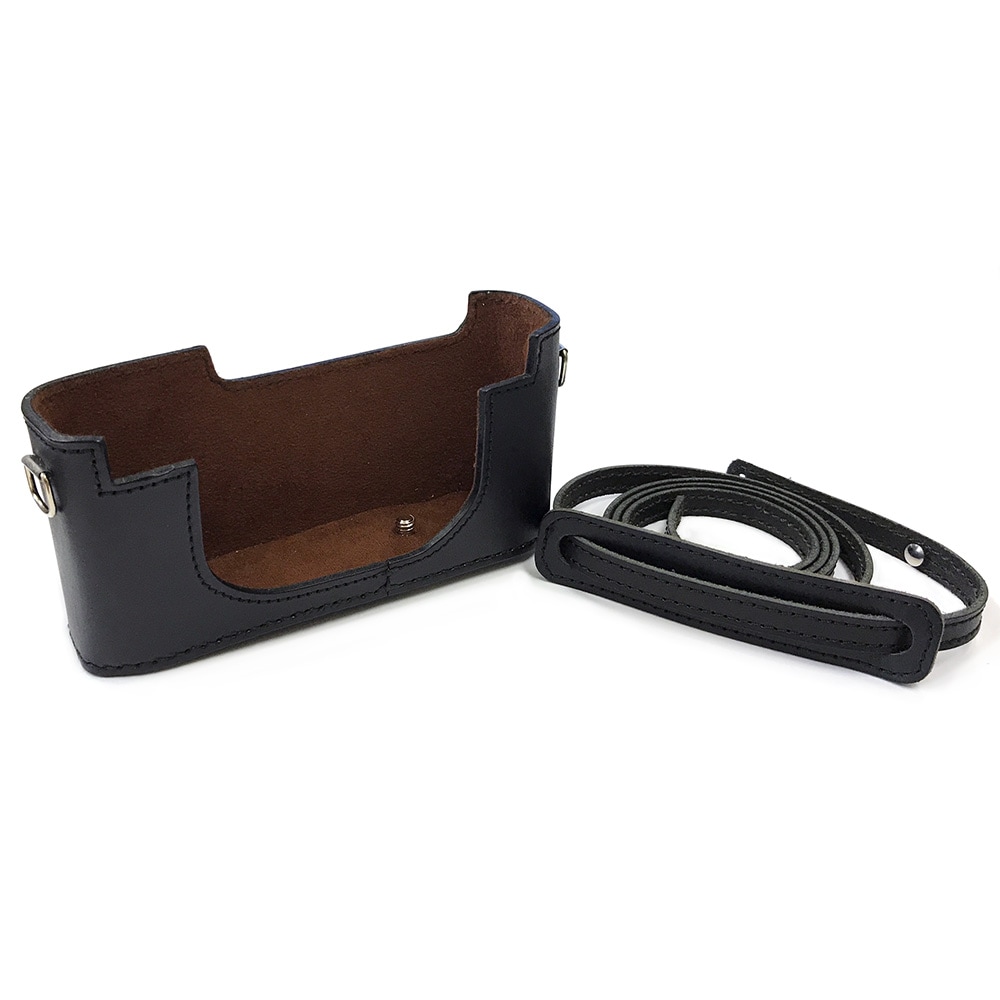 カメラ.ヒラノ FUJIFILM フジフイルム X100用 ハンドメイド本革カメラケース(ストラップ付属) ブラック