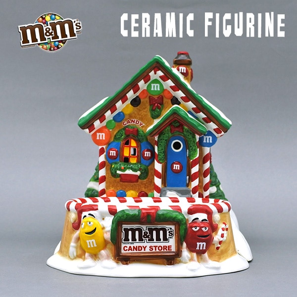 USED品 m&m\'s お皿 陶器 チョコレート エムアンドエムズ レッド イエロー グリーン 家 クリスマス 雪 冬 2004...