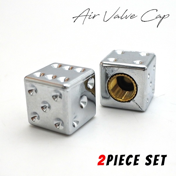 エアバルブキャップ ダイス 2個 ワンセット クローム メッキ 汎用 車 バイク 空気入れ バルブ キャップ サイコロ さいころ ...