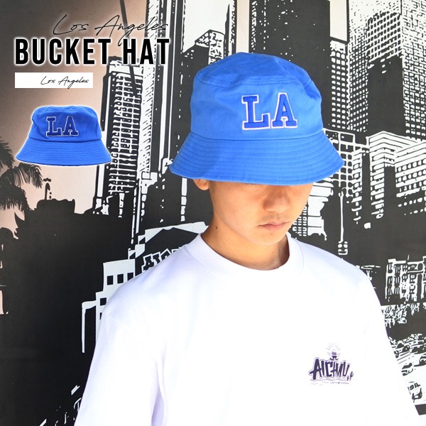 バケットハット メンズ レディース #36 LA 刺繍 ロゴ ライトブルー ブルー 青 ロサンゼルス 大人サイズ バケット ハット...