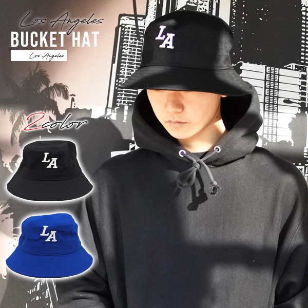 バケットハット メンズ レディース #28 LA 刺繍 ブラック ブルー 黒 青 ロサンゼルス 大人サイズ バケット ハット バケ...