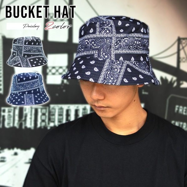 バケットハット ペイズリー 全2色 ブラック ブルー メンズ レディース 黒 青 ロサンゼルス 総柄 ペイズリー柄 勾玉 大人サイ...