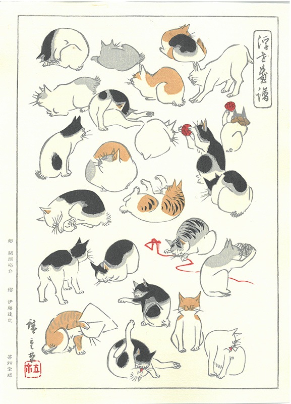 浮世画譜 「猫之図」-歌川広重 Hiroshigeー
