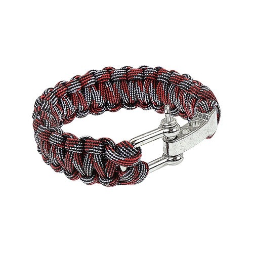 パラコードブレスレット レッド・ブラック(まだら) D金具タイプ