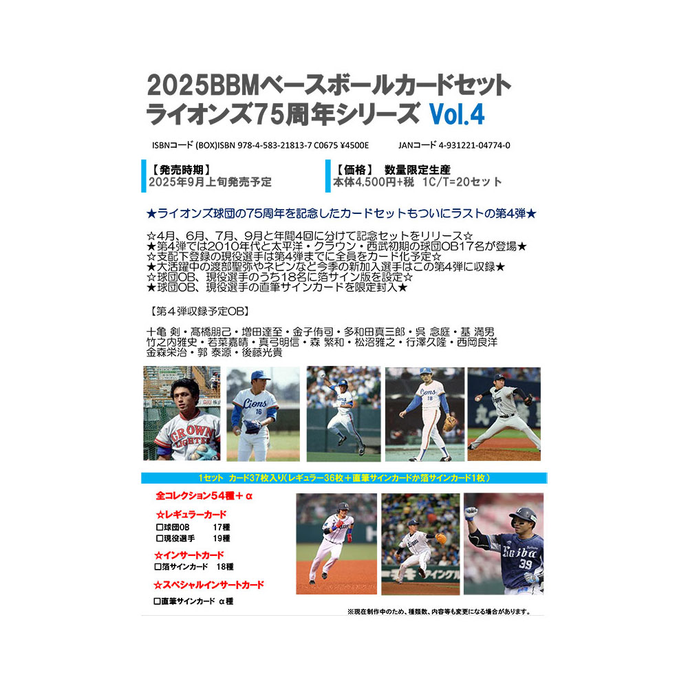 (予約)2025 BBM ベースボールカードセット ライオンズ75周年シリーズ Vol.4 Box 送料無料 9月10日発売予定!