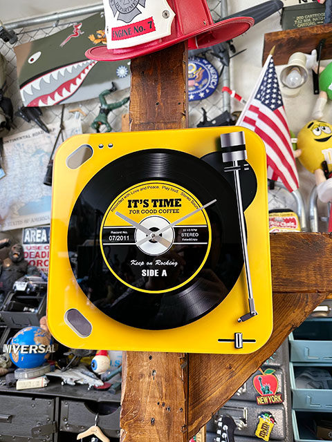 レコードプレーヤー ガラスウォールクロック (イエロー)
