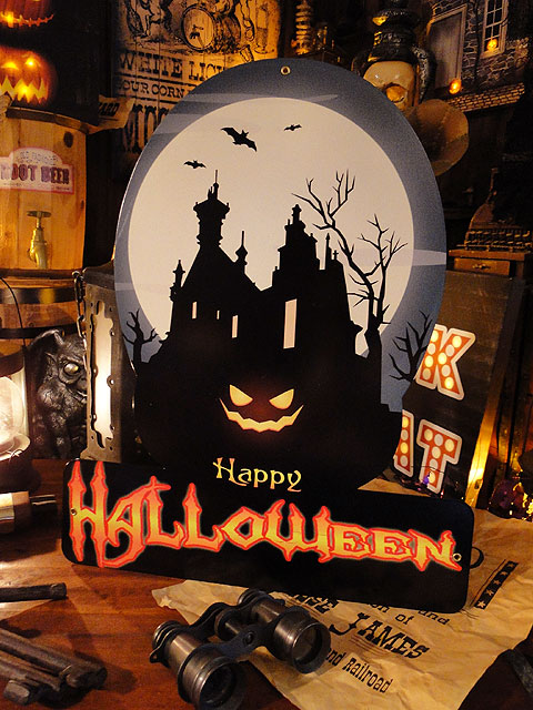 ★稀少な絶盤品★ ハロウィン U.S.ヘヴィースチールサイン (ホーンテッドマンション)
