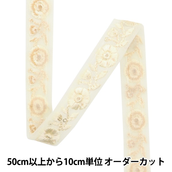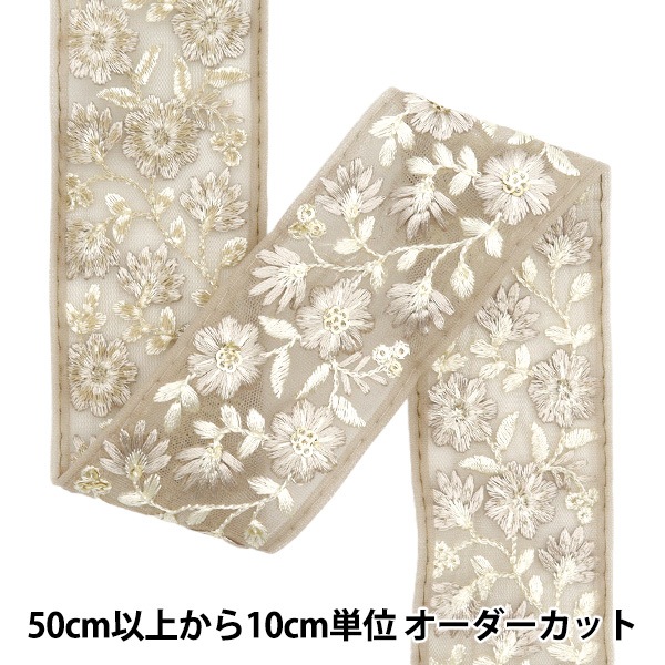 【数量5から】 手芸ブレード 『2024 インド刺繍ブレード ベージュ×ホワイト 3530E』