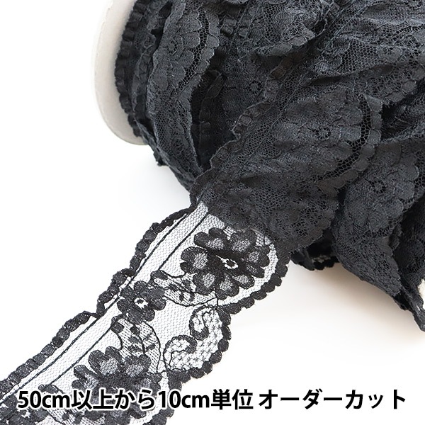 【数量5から】 レース 『パール付きフリルレース 幅約11cm ブラック』