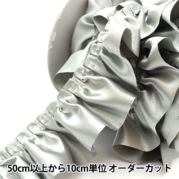 【数量5から】 フリルリボンテープ 『サテンボックスフリル 幅約6.5cm 72番色 銀 650BF-72』