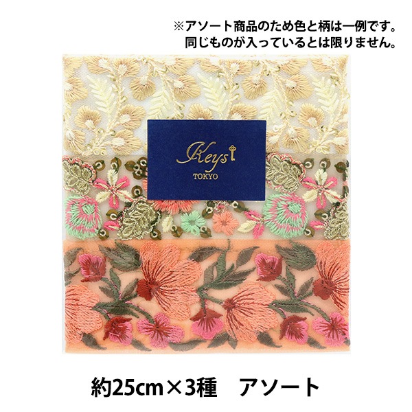 リボン 『インド刺繍リボン 約25cm 3種アソート YAS001』
