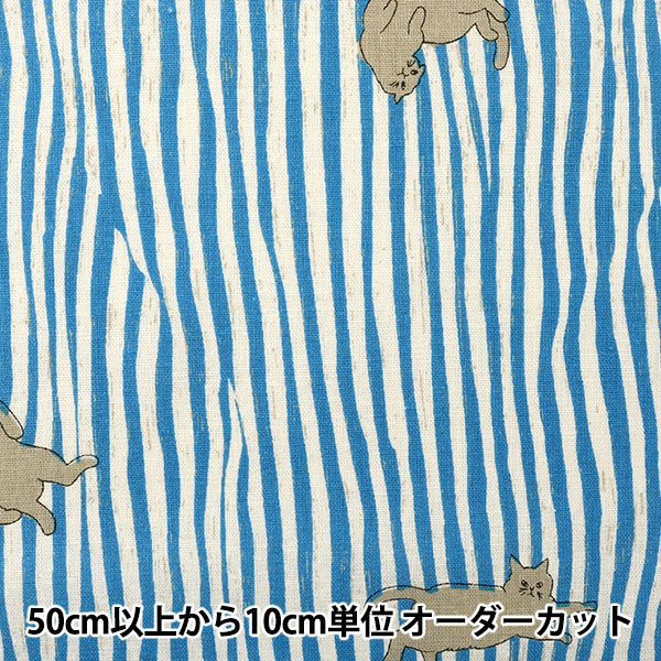 【数量5から】 生地 『綿麻 Kotorinuno Neko Stripe ブルー』 KOKKA コッカ