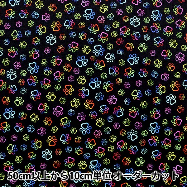 【数量5から】 生地 『USAコットン レインボー 肉球柄 PAW-CD8807』