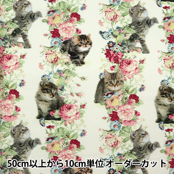 【数量5から】 生地 『シーチング ルルネコ クリーム RU2440R-2A』