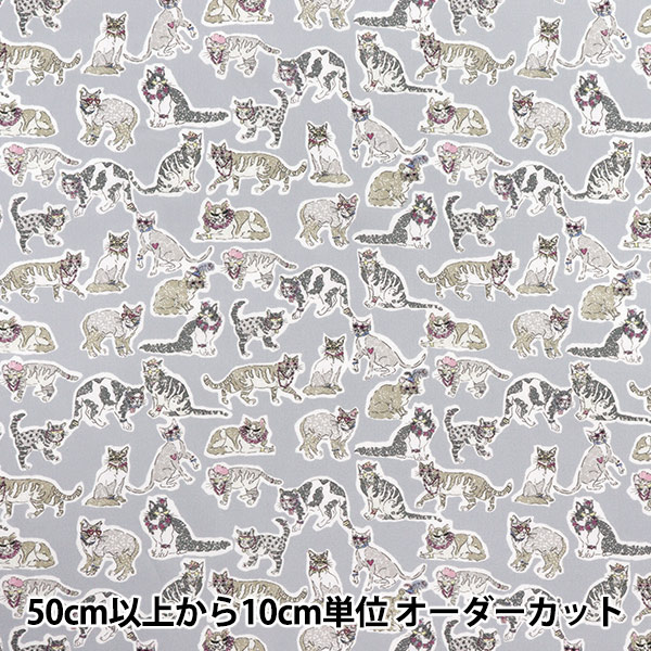 【数量5から】 生地 『オックス レトロアニマル ネコ柄 グレー YKA-86061-1A』 KOKKA コッカ