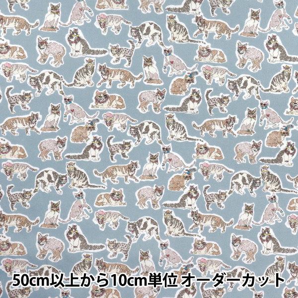 【数量5から】 生地 『オックス キャットガーデン ブルー CMCF-13BL』