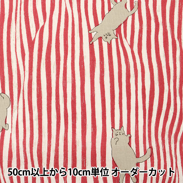【数量5から】 生地 『綿麻 Kotorinuno Neko Stripe レッド』 KOKKA コッカ