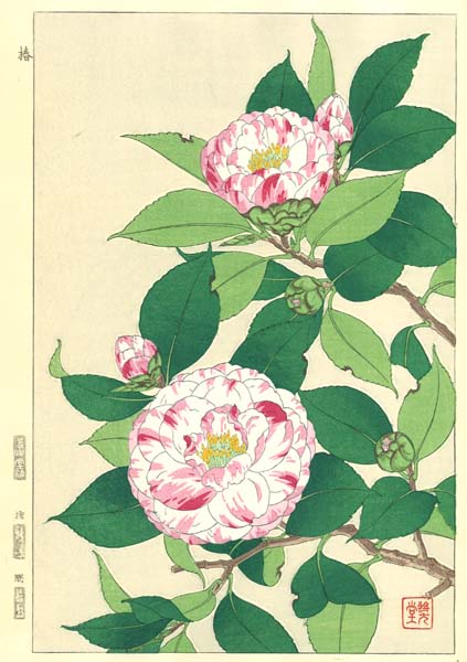 F049 椿 花版画 Flower Woodcut-striped camellia-