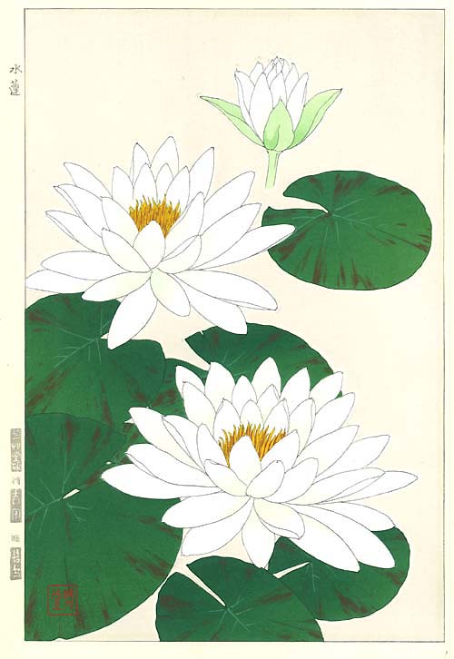 F056 スイレン(白) 花版画 Flower Woodcut ーWater lilyー