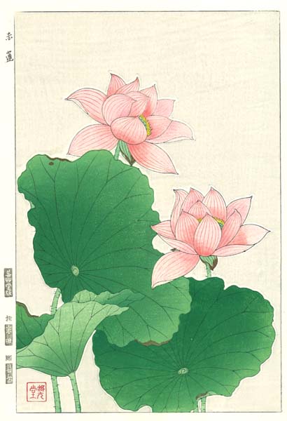 F059 赤蓮 花版画 Flower Woodcut ‐Lotus‐