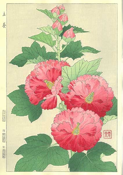 F081 立葵 花版画 Flower Woodcut-Hollyhock-