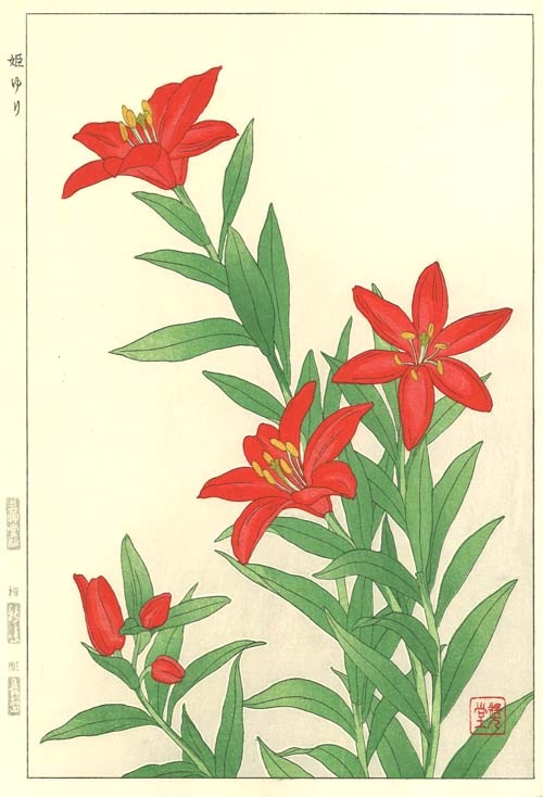 F069 姫ゆり 花版画 Flower Woodcut ‐Red star lily ‐