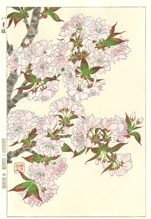 F018 八重桜 花版画 Flower woodcut -double cherry-