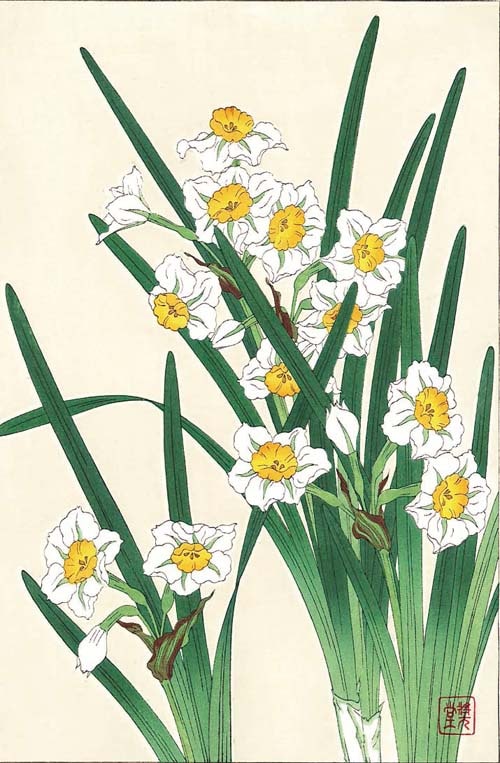F116 水仙 花版画 Flower Woodcut-Narcissus