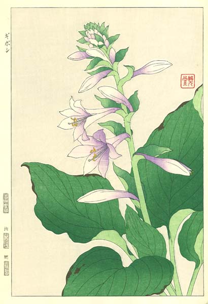 F071 ぎぼし 花版画 Flower Woodcut ‐Stone leek flower ‐