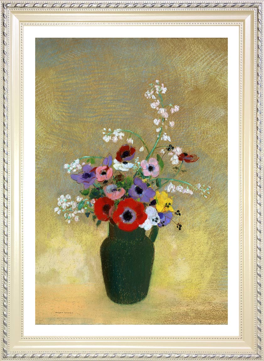 ルドン Large Green Vase with Mixed Flowers ジークレーポスター額装品