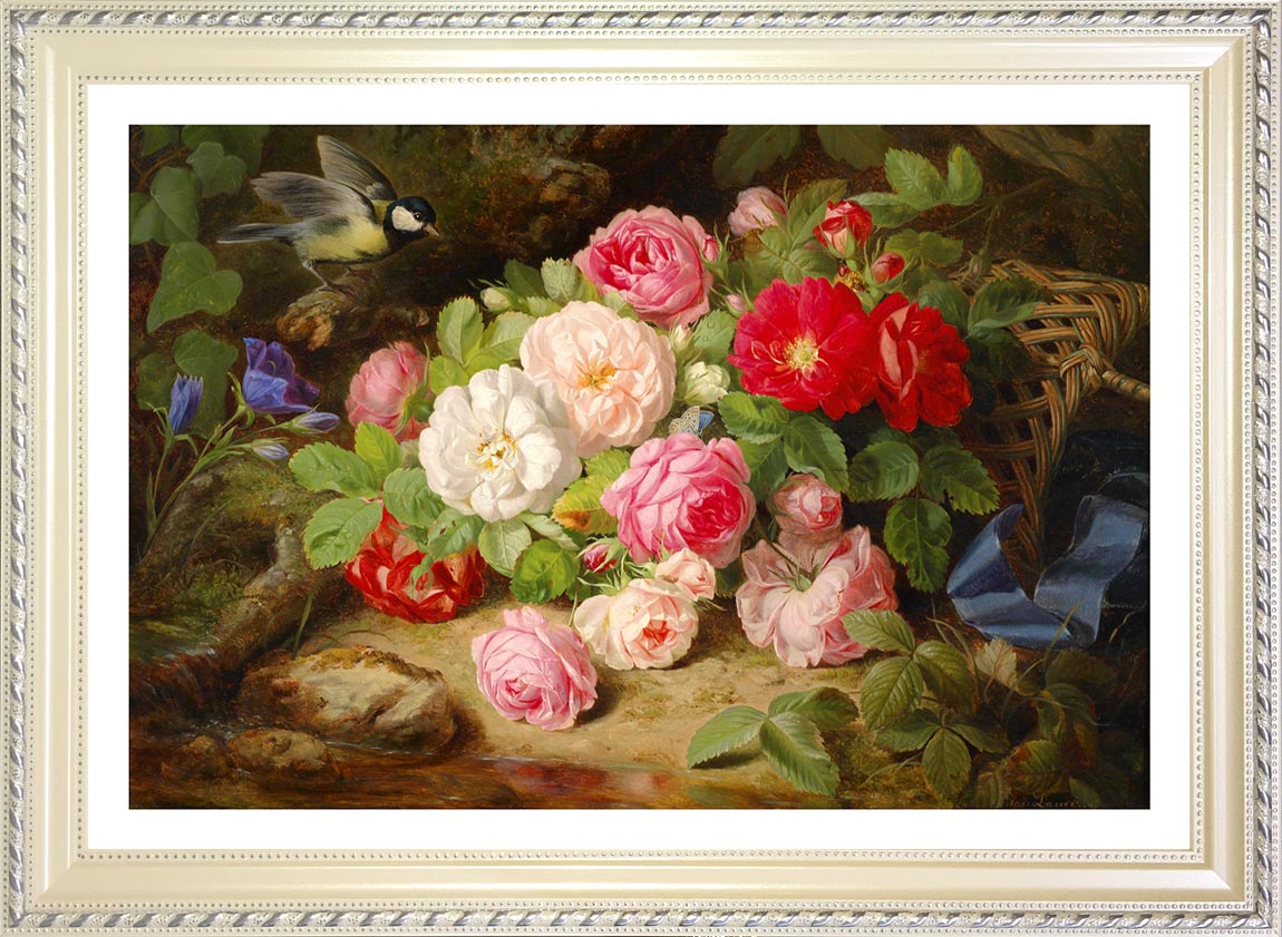 Josef Lauer 森にバラの花束 ジークレーポスター額装品