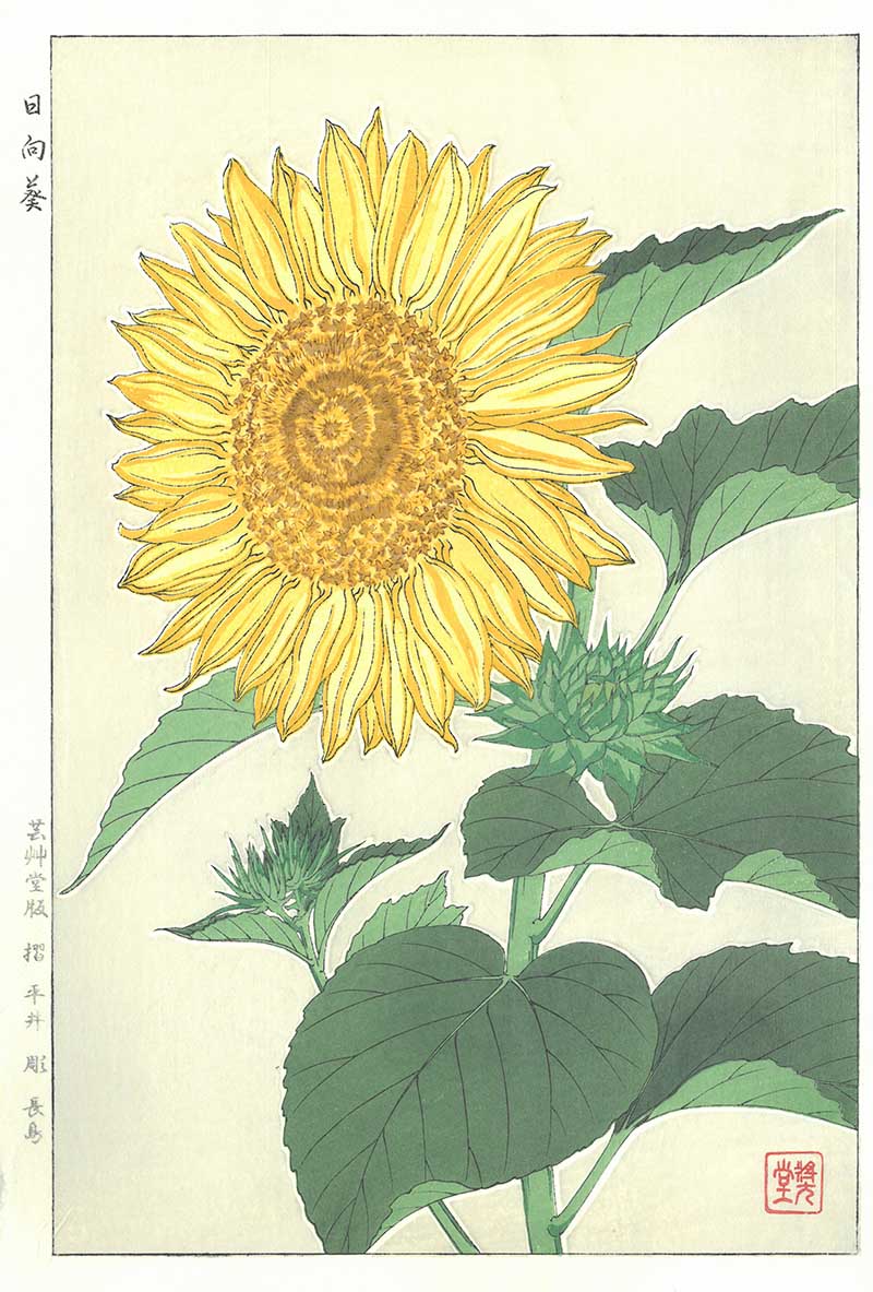 F087 向日葵 花版画 Flower Woodcut ‐Sunflower‐