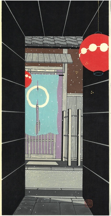 加藤晃秀 木版画 No3 蛇の目路地-Teruhide Kato -