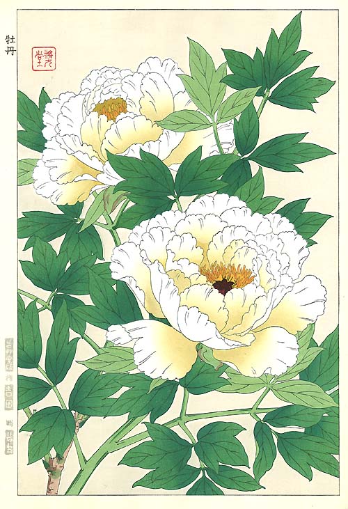 F009 牡丹 花版画 Flower Woodcut ‐Peony ‐