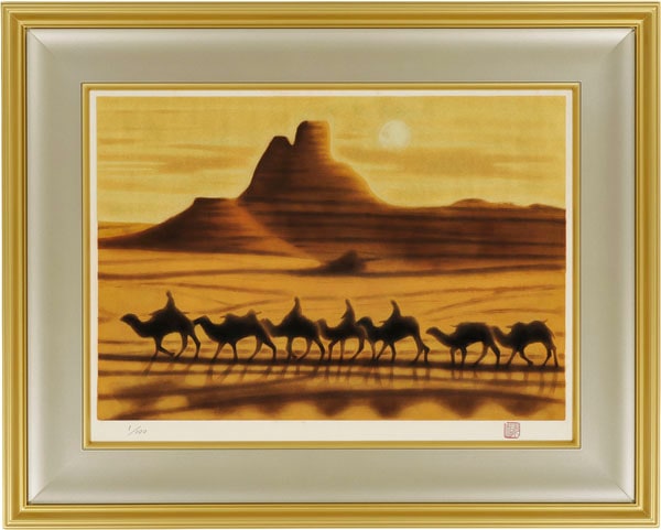 平山郁夫 筆 文化勲章受章者 楼蘭の朝 手摺木版画