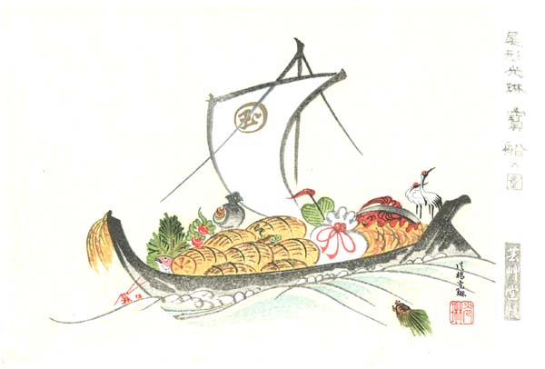 尾形光琳ー木版画 宝船 Korin Ogata Woodcut