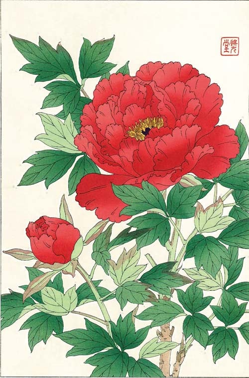 F012 芍薬 花版画 Flower Woodcut ‐Peony ‐