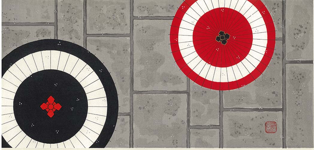 加藤晃秀 木版画 No10 出会い傘ーTeruhide Katoー